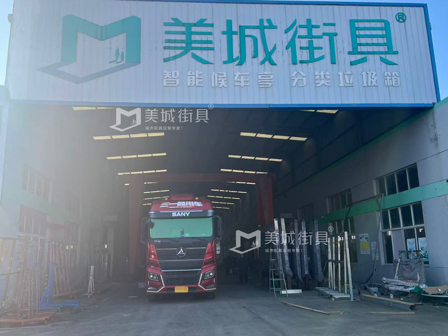 江蘇美城街具供應葫蘆島第二批候車亭公交站臺發(fā)貨案例,以下是候車亭站臺發(fā)貨現(xiàn)場圖: