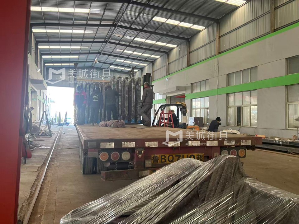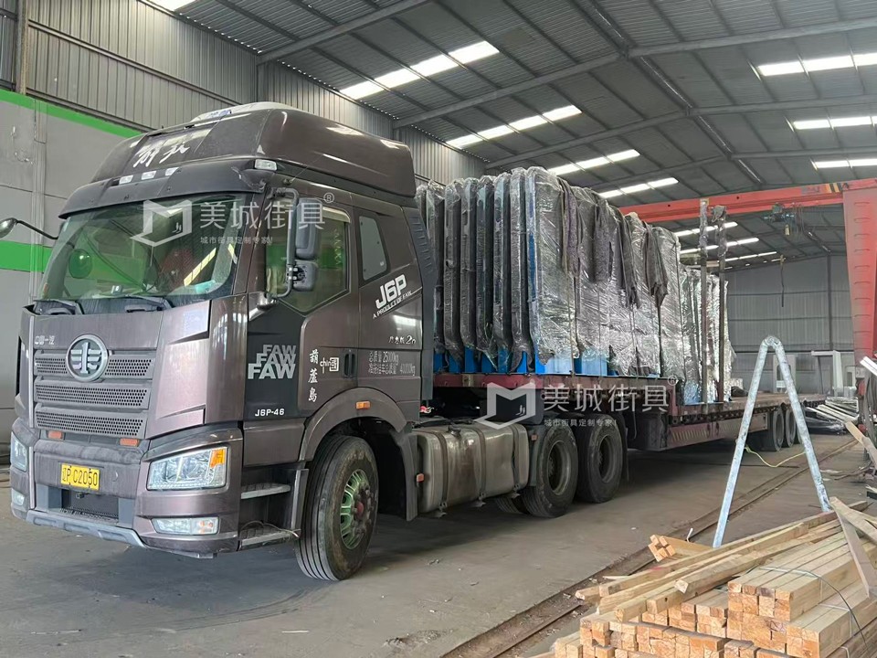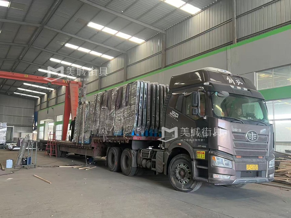 江蘇美城街具供應葫蘆島第四批公交候車亭發(fā)貨案例,以下是候車亭站臺發(fā)貨現(xiàn)場圖: